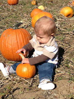 We plopped Brooksie down to play with some pumpkins while we found our pumpkins.