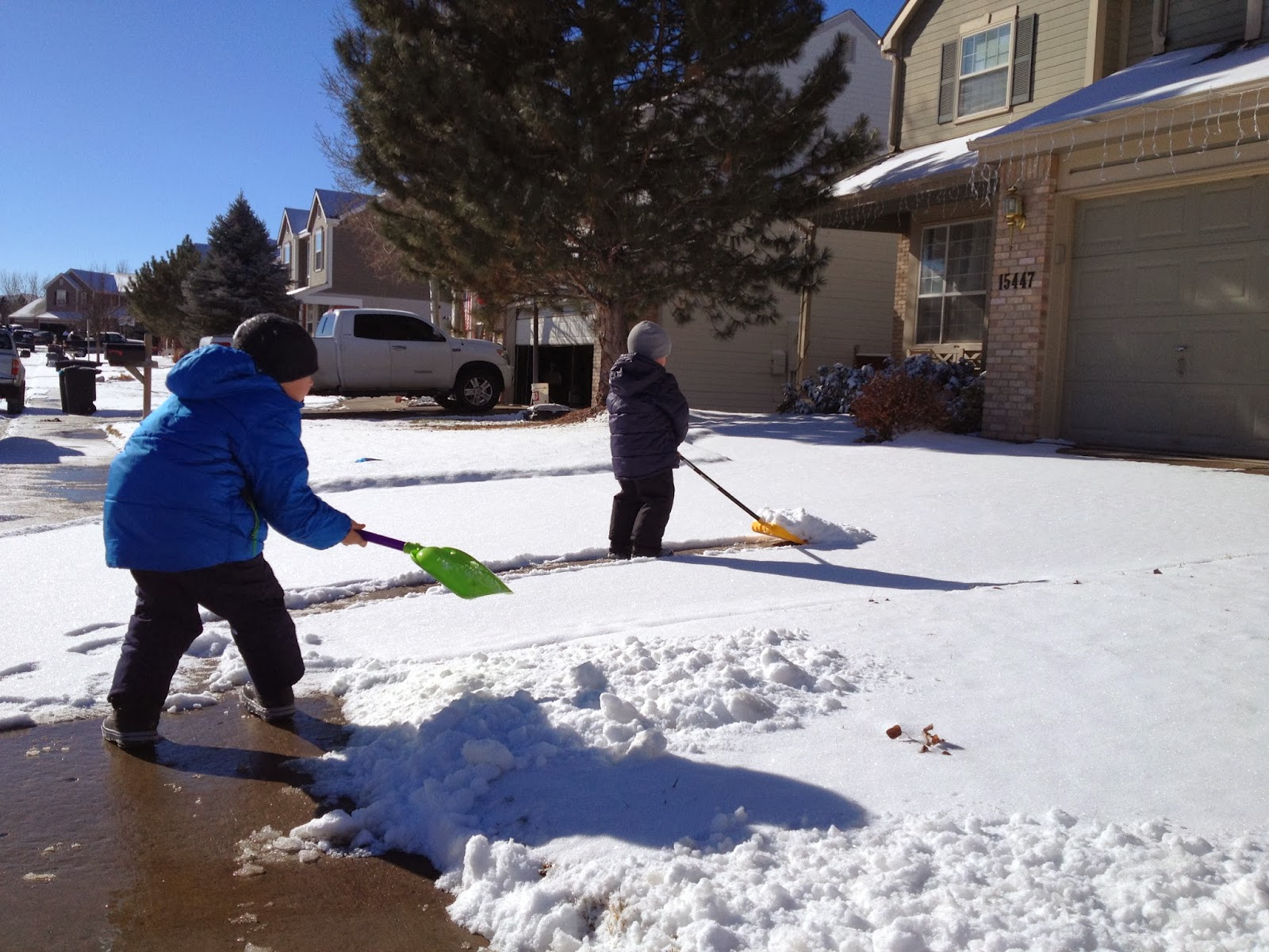 The boys each have a shovel now and had fun helping Daddy clear our driveway and a bunch of neighbors' driveways too.